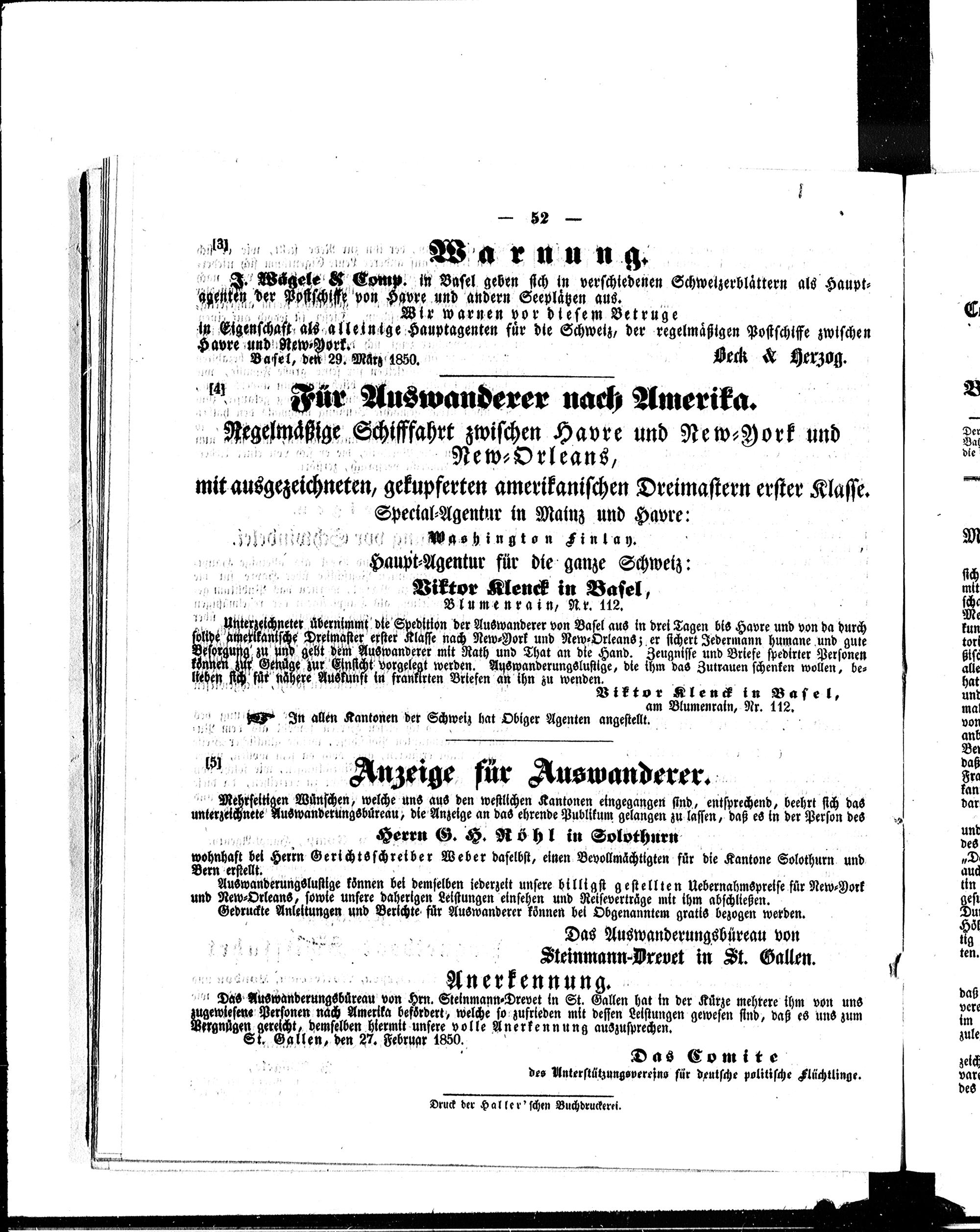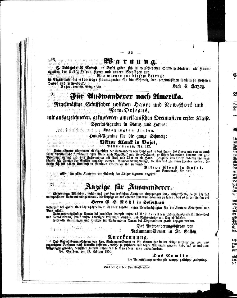 Der Schweizerische Auswanderer : Central-Organ für schweizerische Auswanderung und Ansiedlung in Amerika