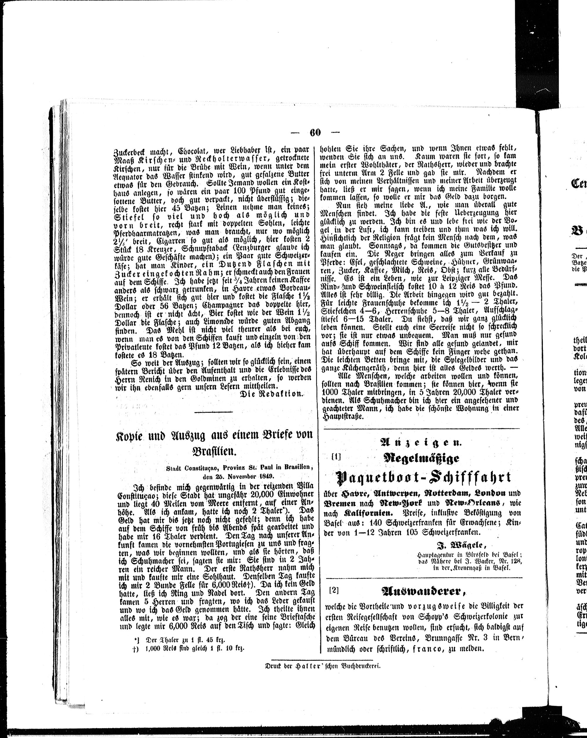 Der Schweizerische Auswanderer : Central-Organ für schweizerische Auswanderung und Ansiedlung in Amerika