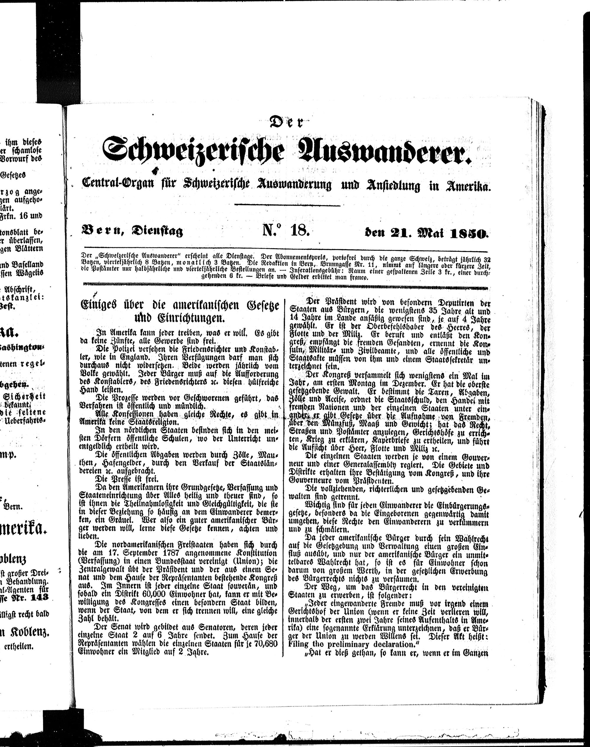 Der Schweizerische Auswanderer. 1850-1850