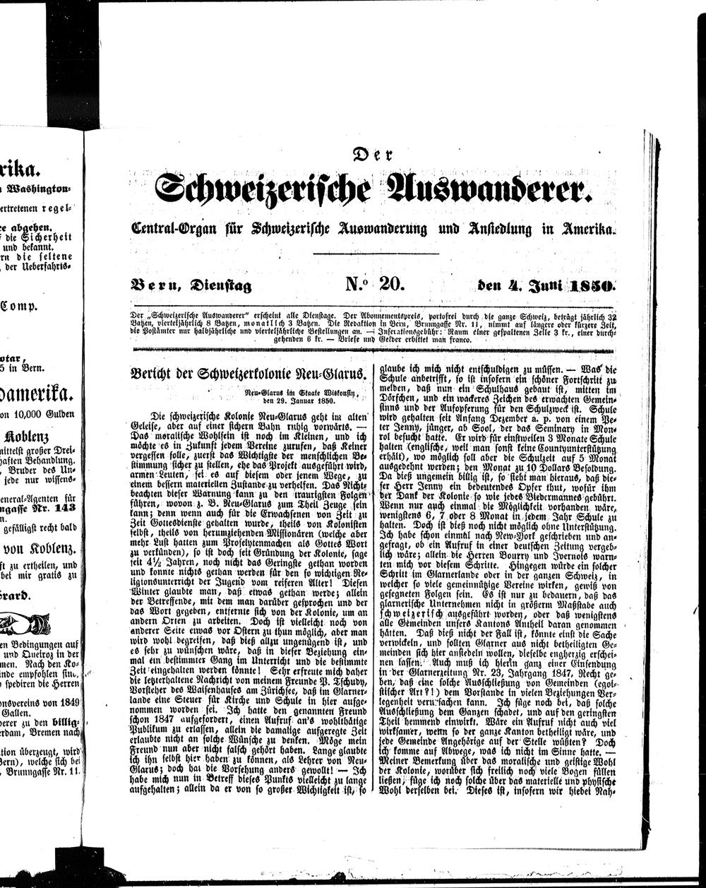 Der Schweizerische Auswanderer : Central-Organ für schweizerische Auswanderung und Ansiedlung in Amerika
