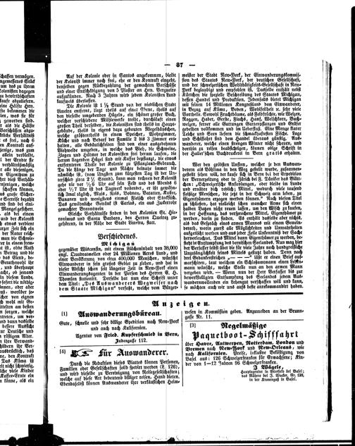 Der Schweizerische Auswanderer : Central-Organ für schweizerische Auswanderung und Ansiedlung in Amerika