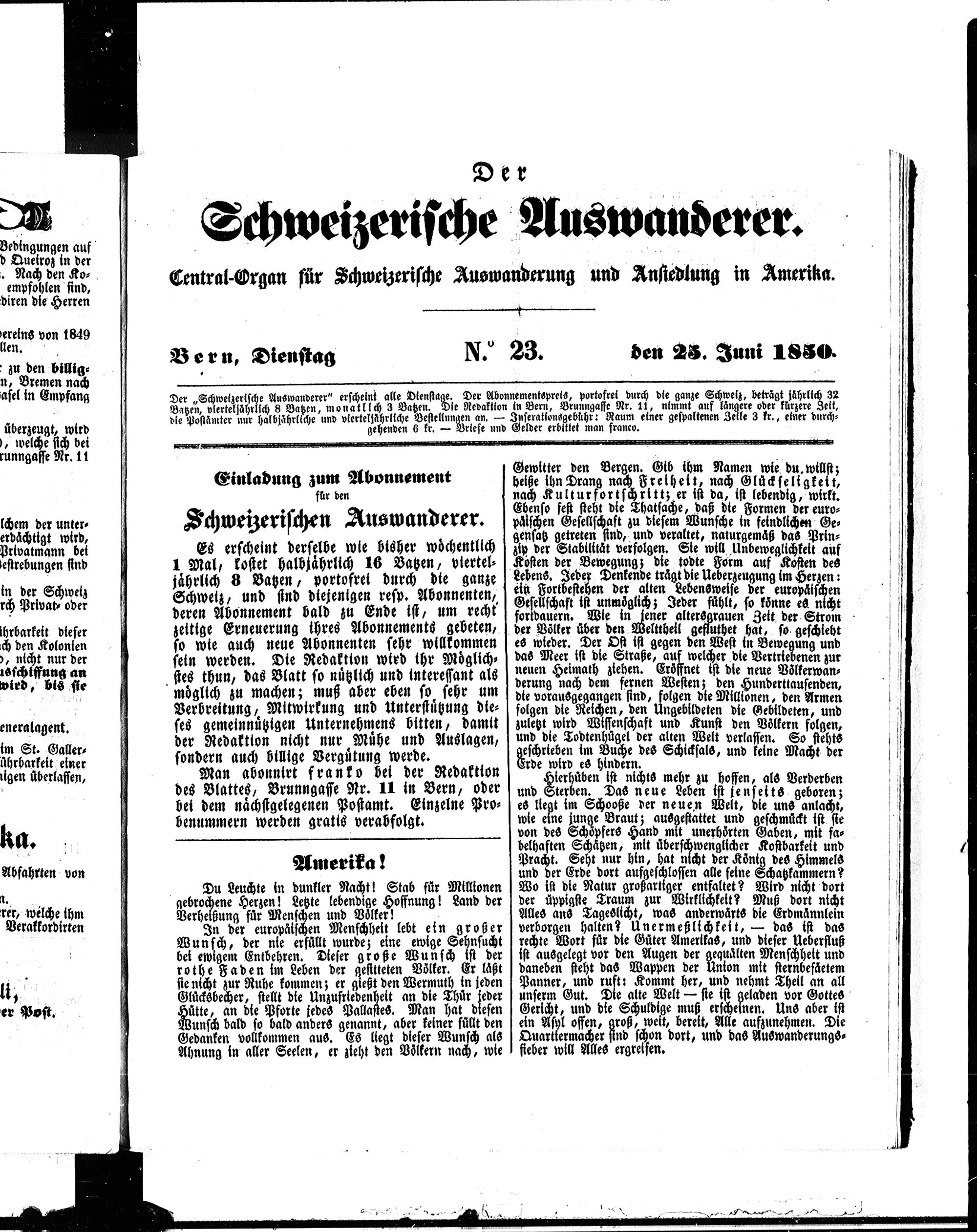 Der Schweizerische Auswanderer. 1850-1850