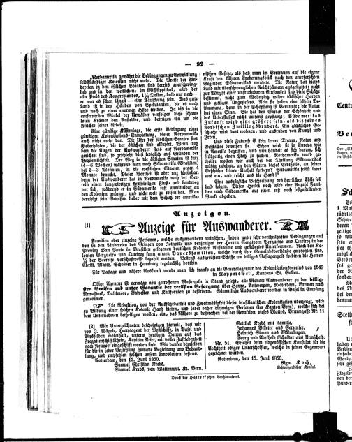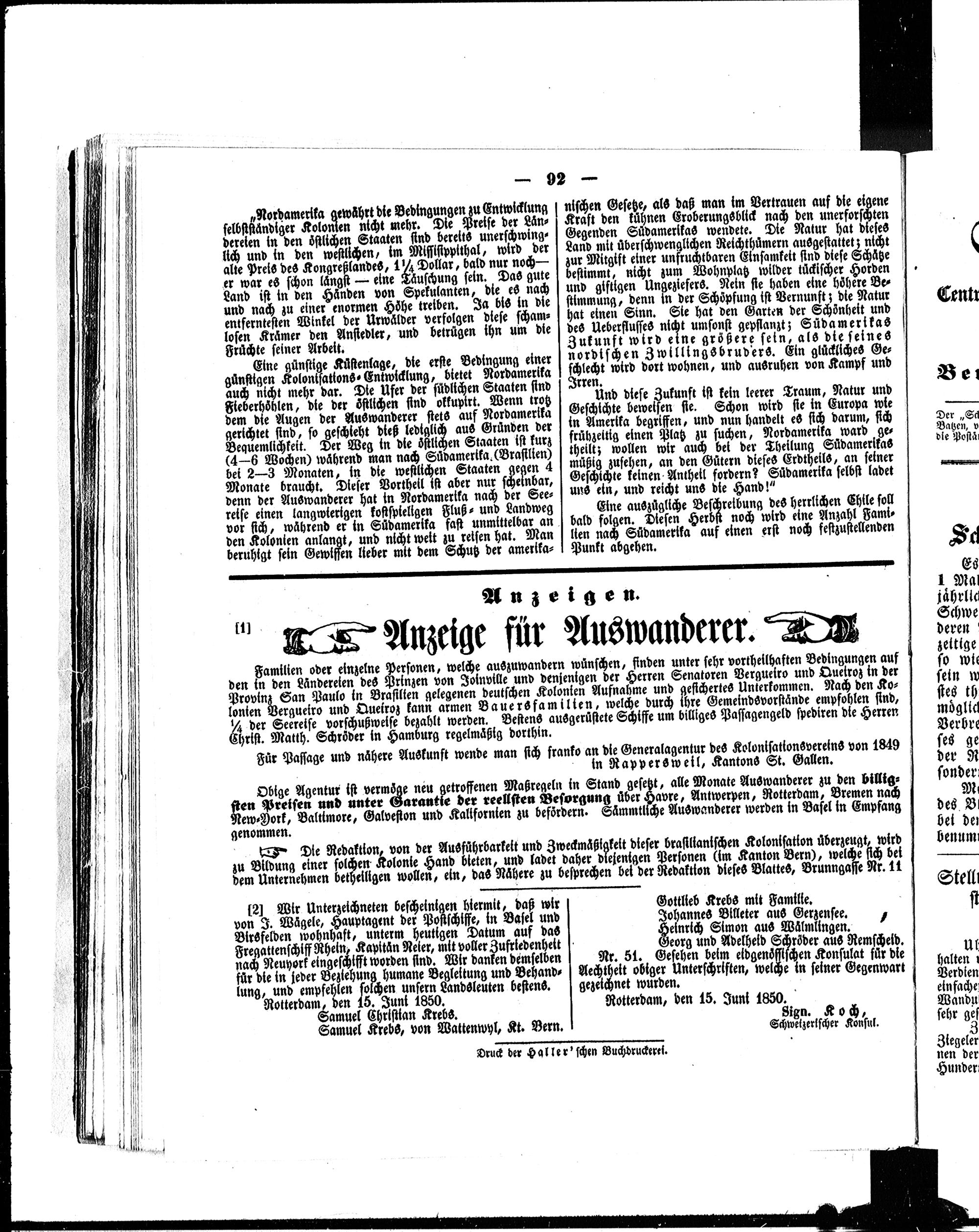 Der Schweizerische Auswanderer : Central-Organ für schweizerische Auswanderung und Ansiedlung in Amerika