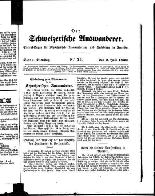 Der Schweizerische Auswanderer : Central-Organ für schweizerische Auswanderung und Ansiedlung in Amerika