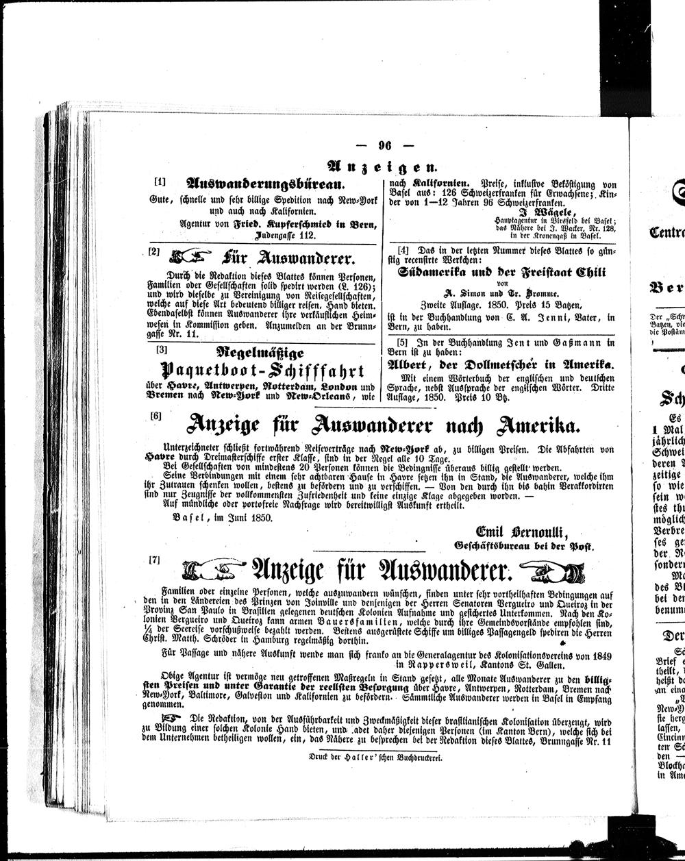 Der Schweizerische Auswanderer. 1850-1850