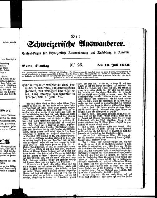Der Schweizerische Auswanderer. 1850-1850