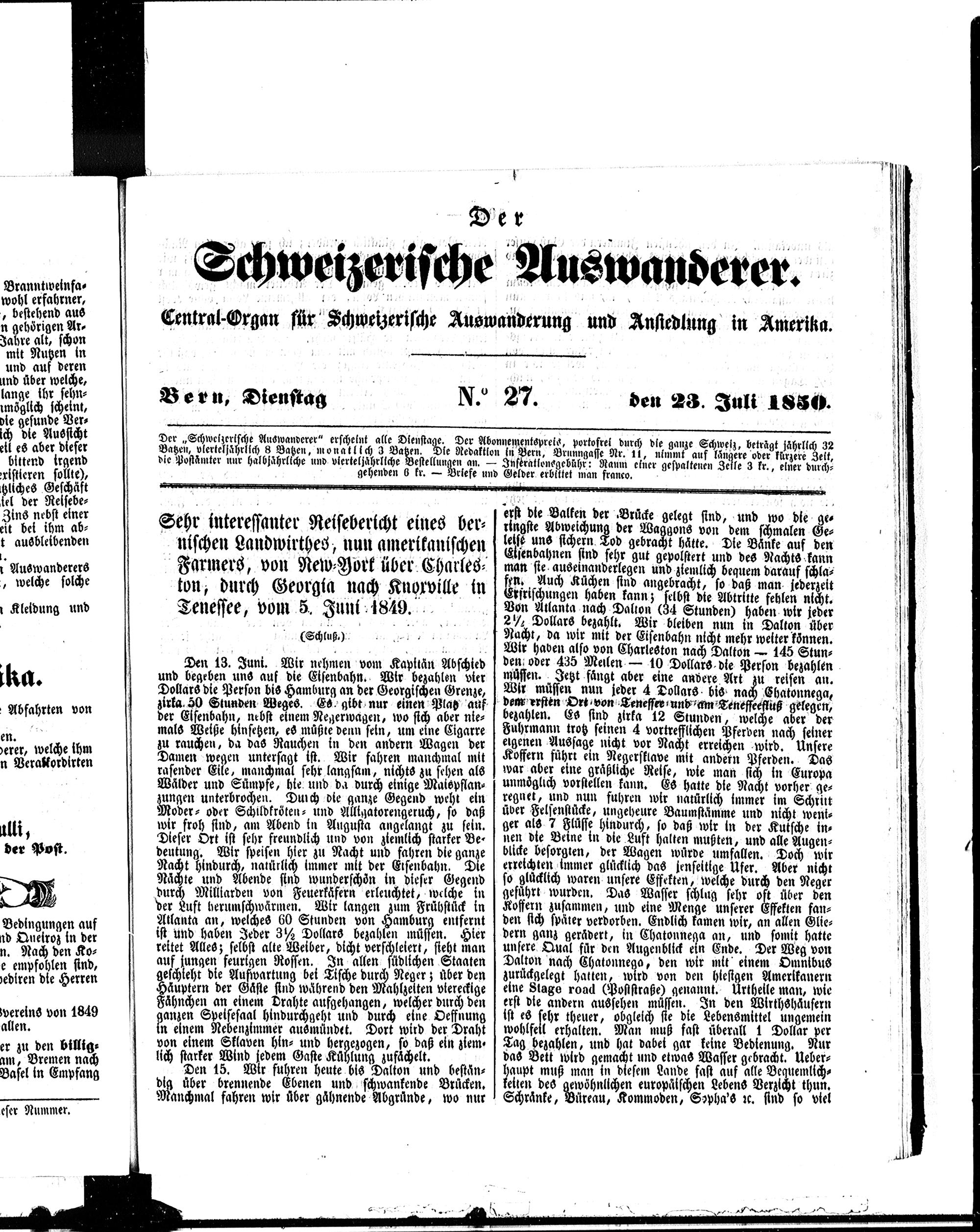 Der Schweizerische Auswanderer : Central-Organ für schweizerische Auswanderung und Ansiedlung in Amerika