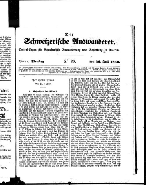 Der Schweizerische Auswanderer. 1850-1850