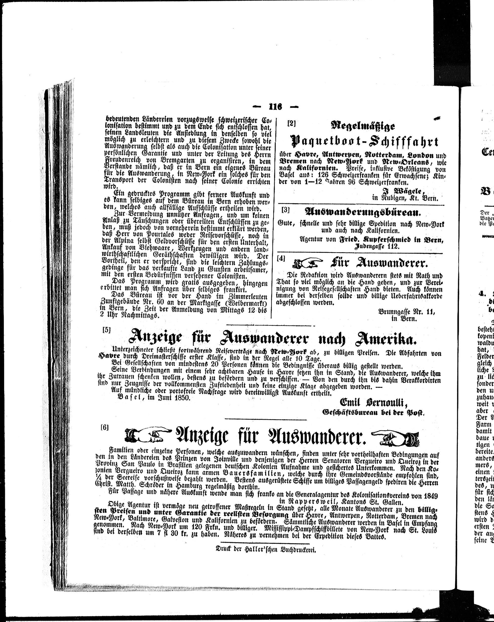 Der Schweizerische Auswanderer. 1850-1850
