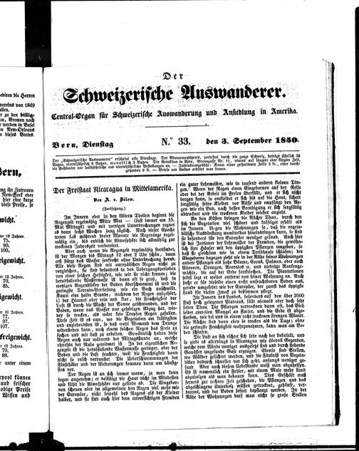 Der Schweizerische Auswanderer : Central-Organ für schweizerische Auswanderung und Ansiedlung in Amerika