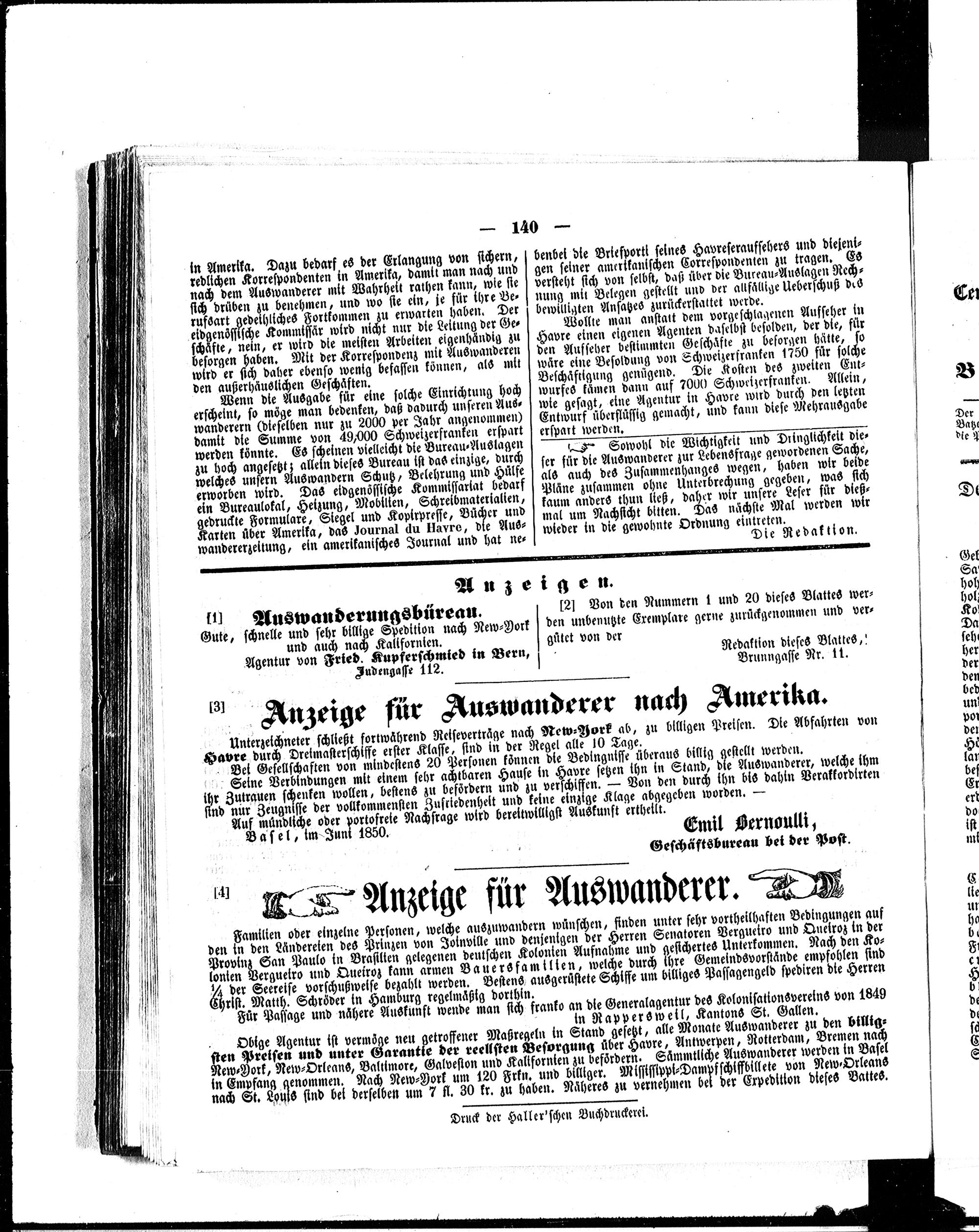 Der Schweizerische Auswanderer. 1850-1850