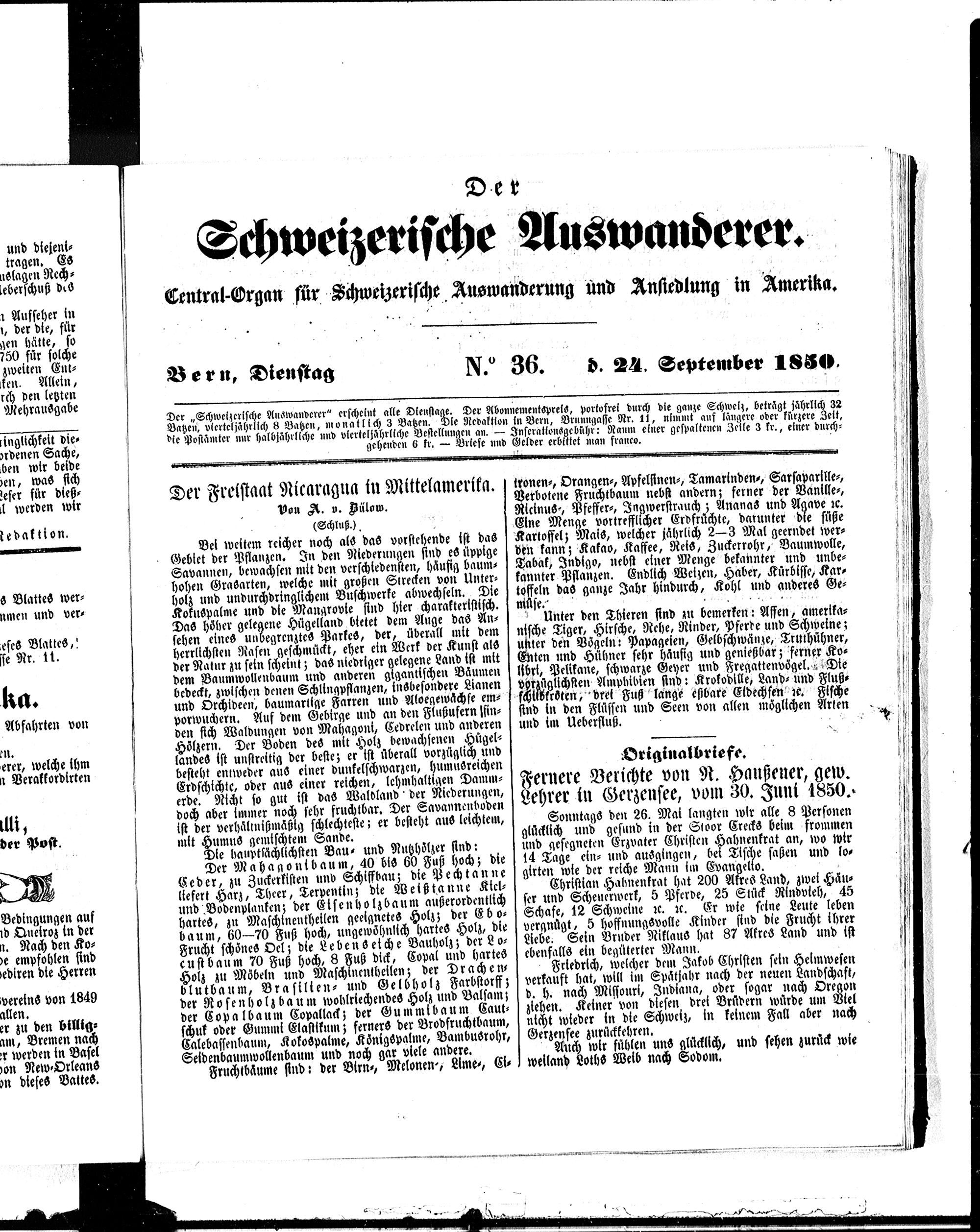 Der Schweizerische Auswanderer. 1850-1850