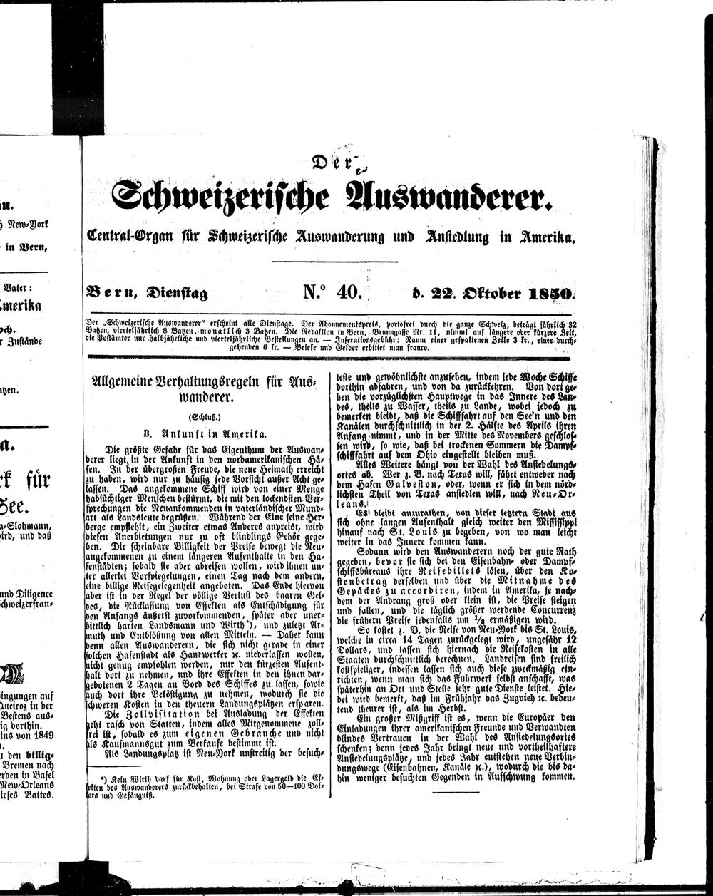 Der Schweizerische Auswanderer. 1850-1850