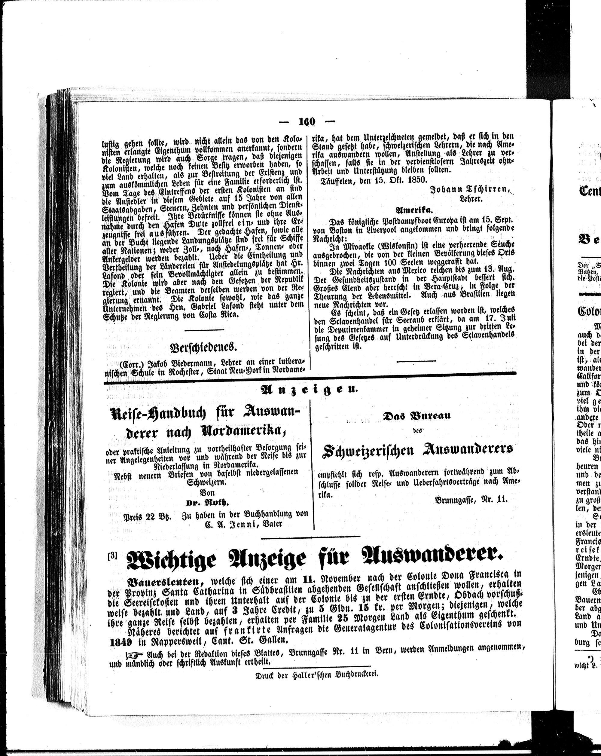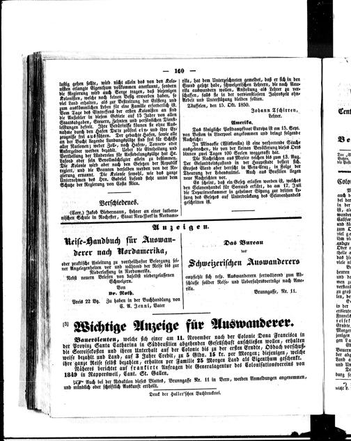 Der Schweizerische Auswanderer. 1850-1850
