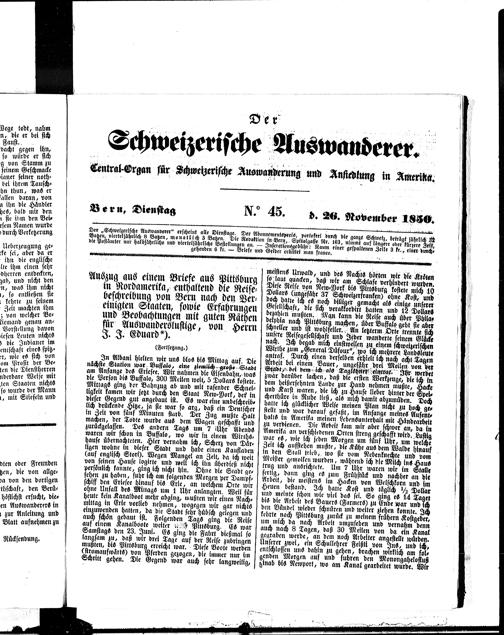 Der Schweizerische Auswanderer. 1850-1850