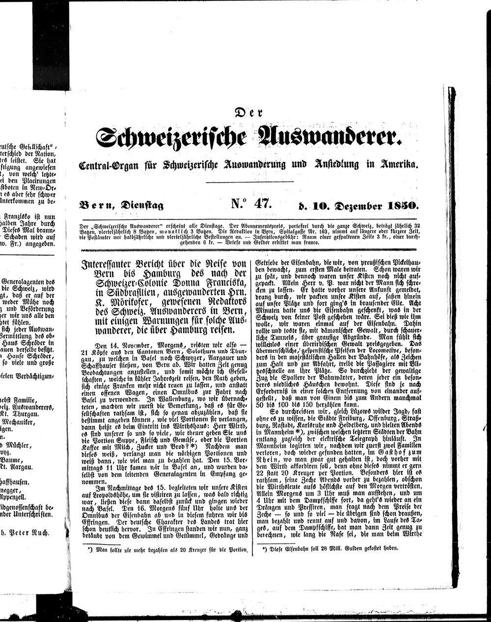 Der Schweizerische Auswanderer. 1850-1850