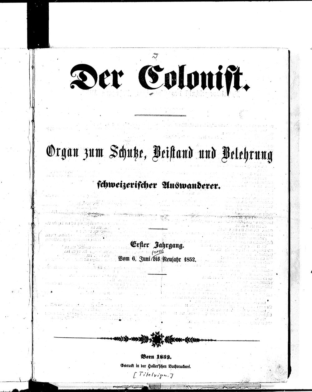 Der Kolonist : Organ zum Schutze, Beistand und Belehrung schweizerischer Auswanderer
