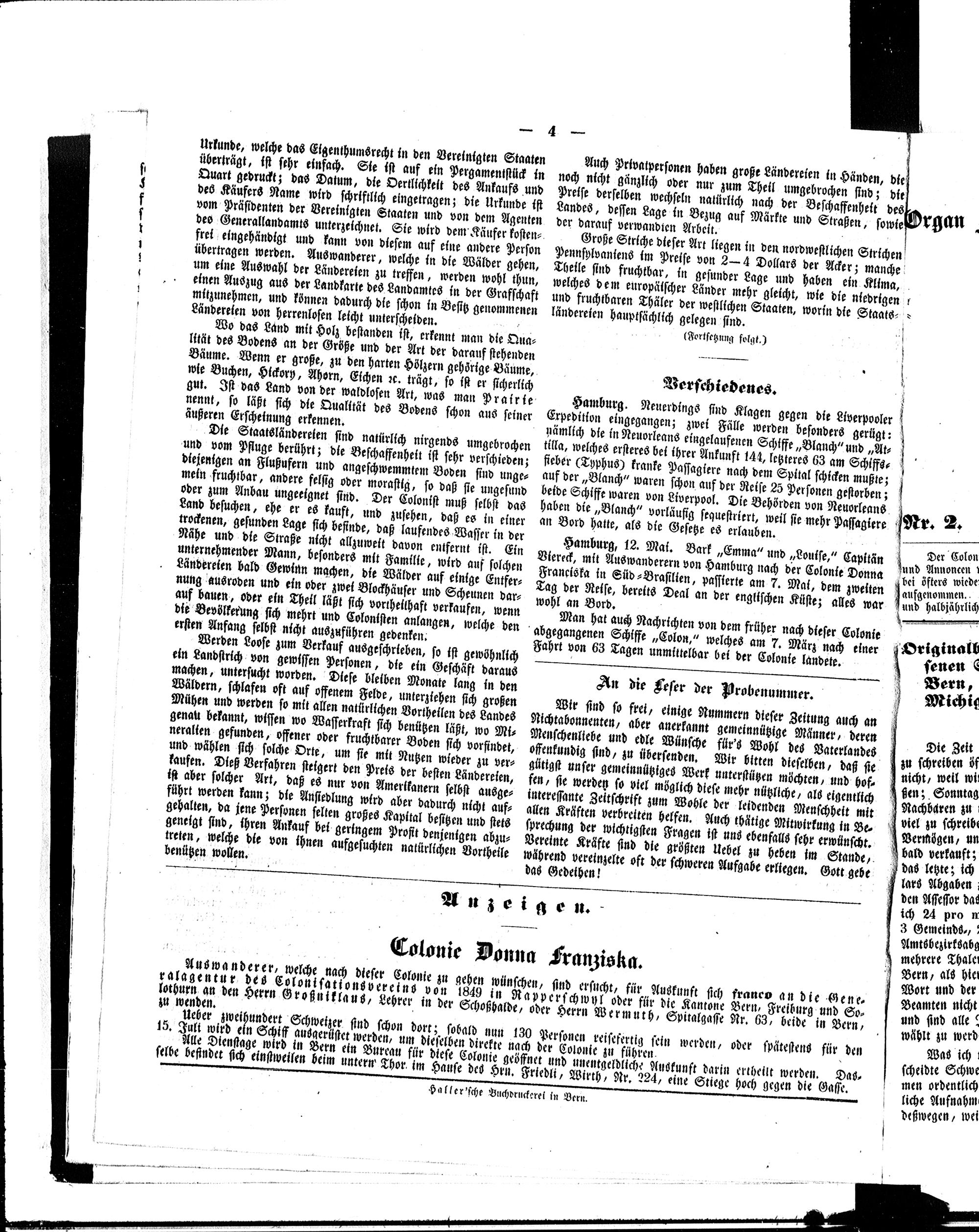 Der Kolonist : Organ zum Schutze, Beistand und Belehrung schweizerischer Auswanderer