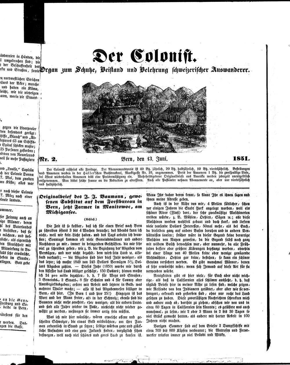 Der Kolonist : Organ zum Schutze, Beistand und Belehrung schweizerischer Auswanderer