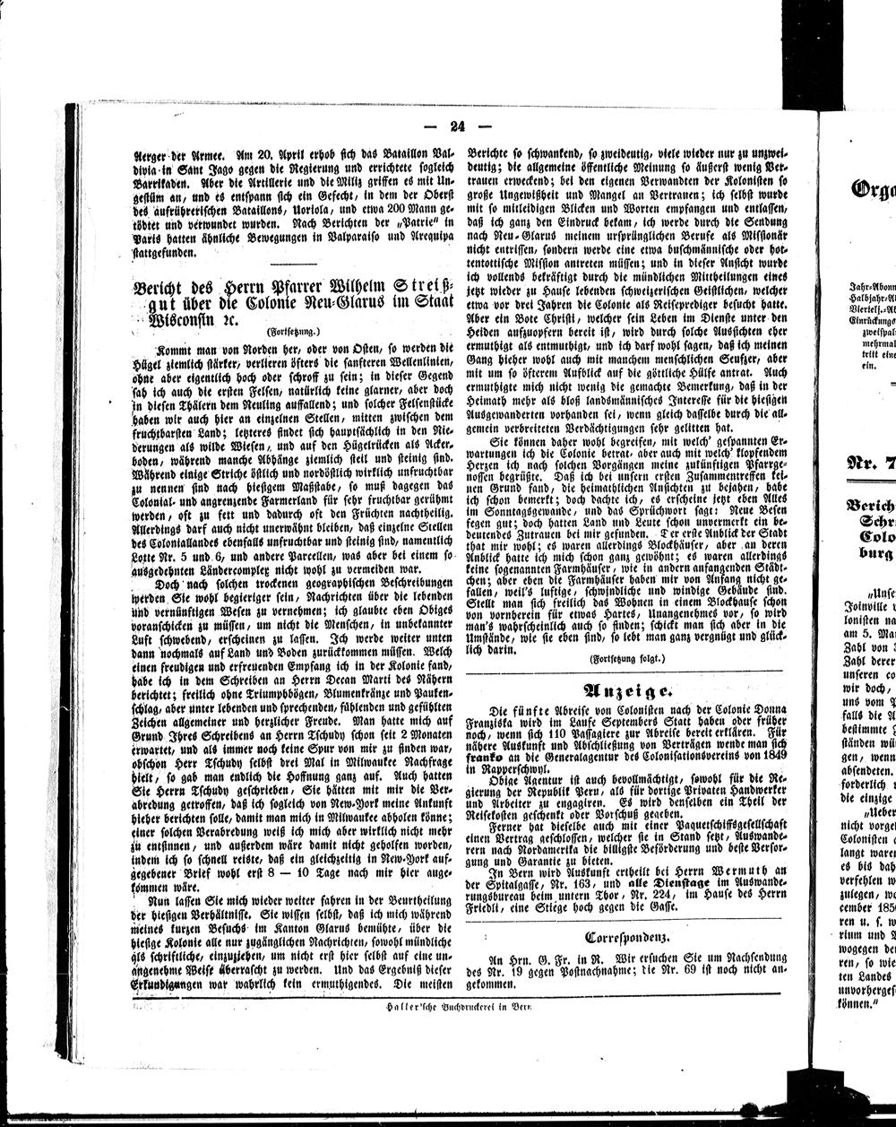 Der Kolonist : Organ zum Schutze, Beistand und Belehrung schweizerischer Auswanderer