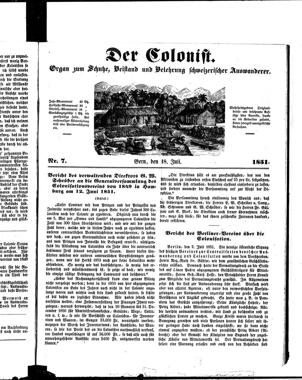 Der Kolonist : Organ zum Schutze, Beistand und Belehrung schweizerischer Auswanderer