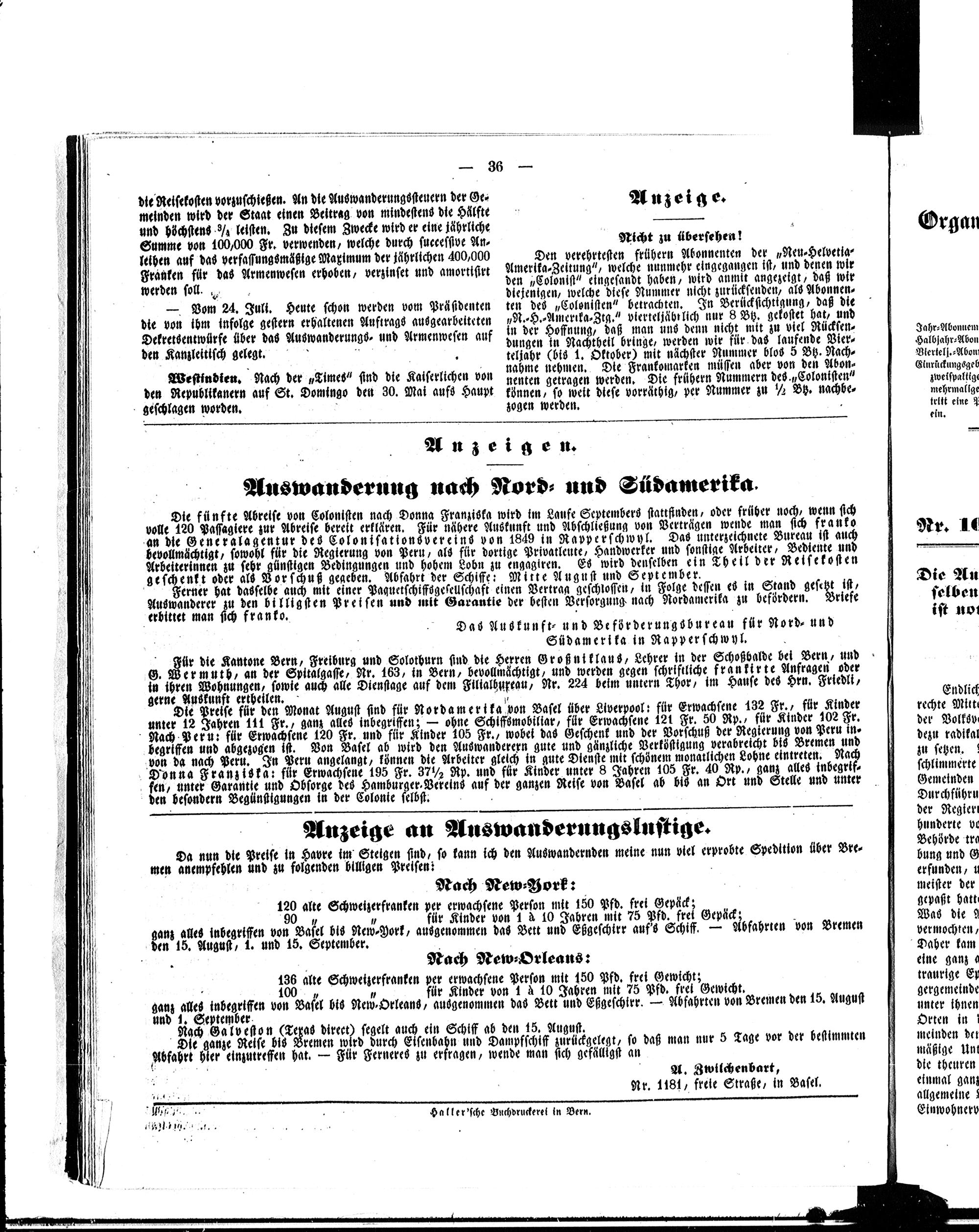 Der Kolonist : Organ zum Schutze, Beistand und Belehrung schweizerischer Auswanderer