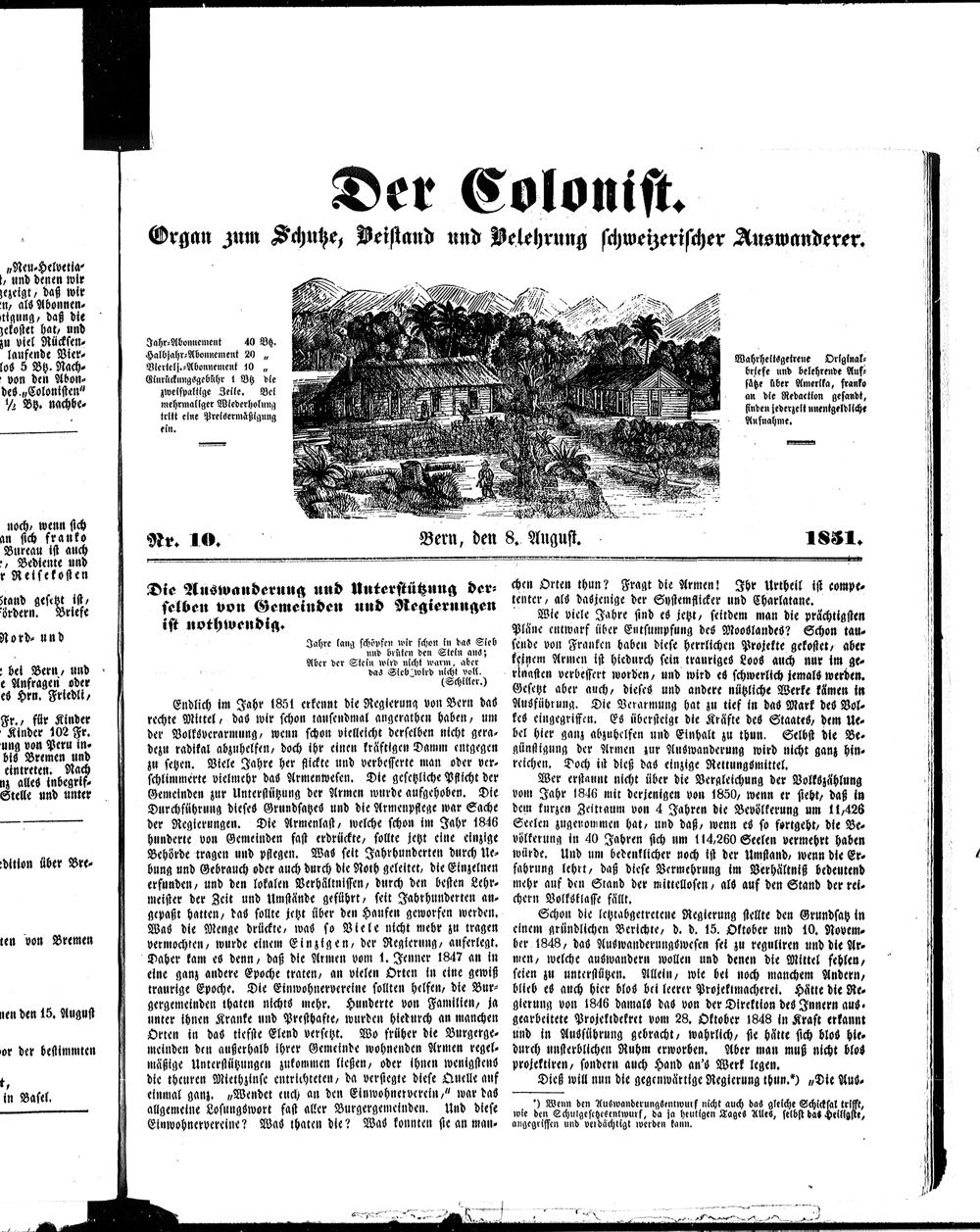 Der Kolonist. 1851-1857