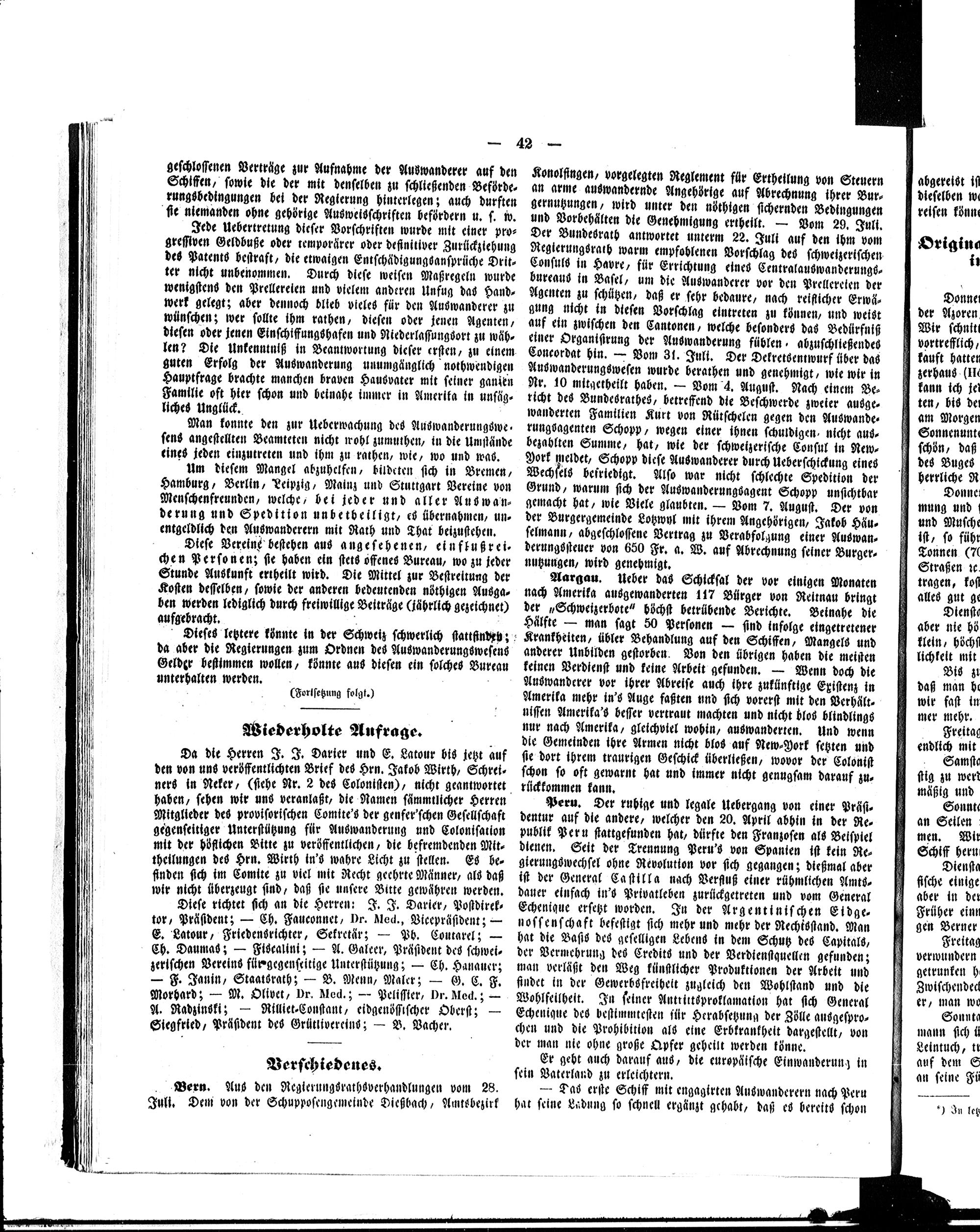 Der Kolonist : Organ zum Schutze, Beistand und Belehrung schweizerischer Auswanderer