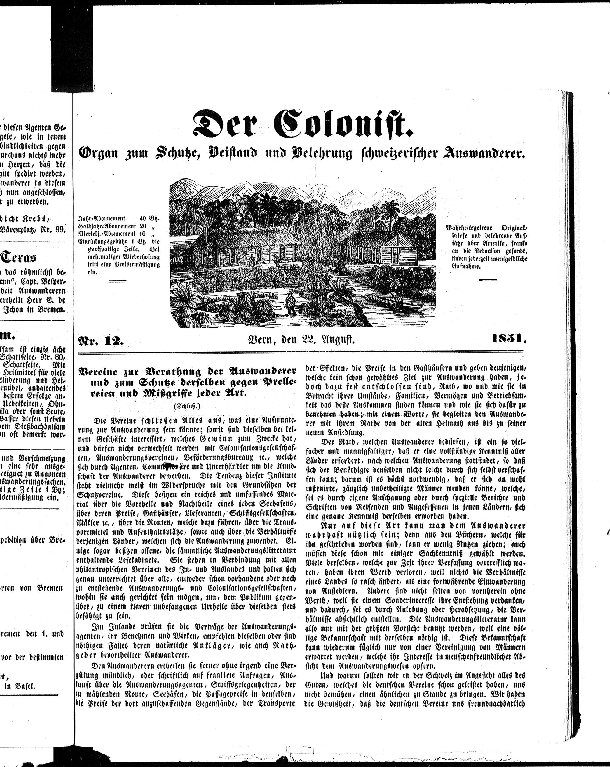 Der Kolonist : Organ zum Schutze, Beistand und Belehrung schweizerischer Auswanderer
