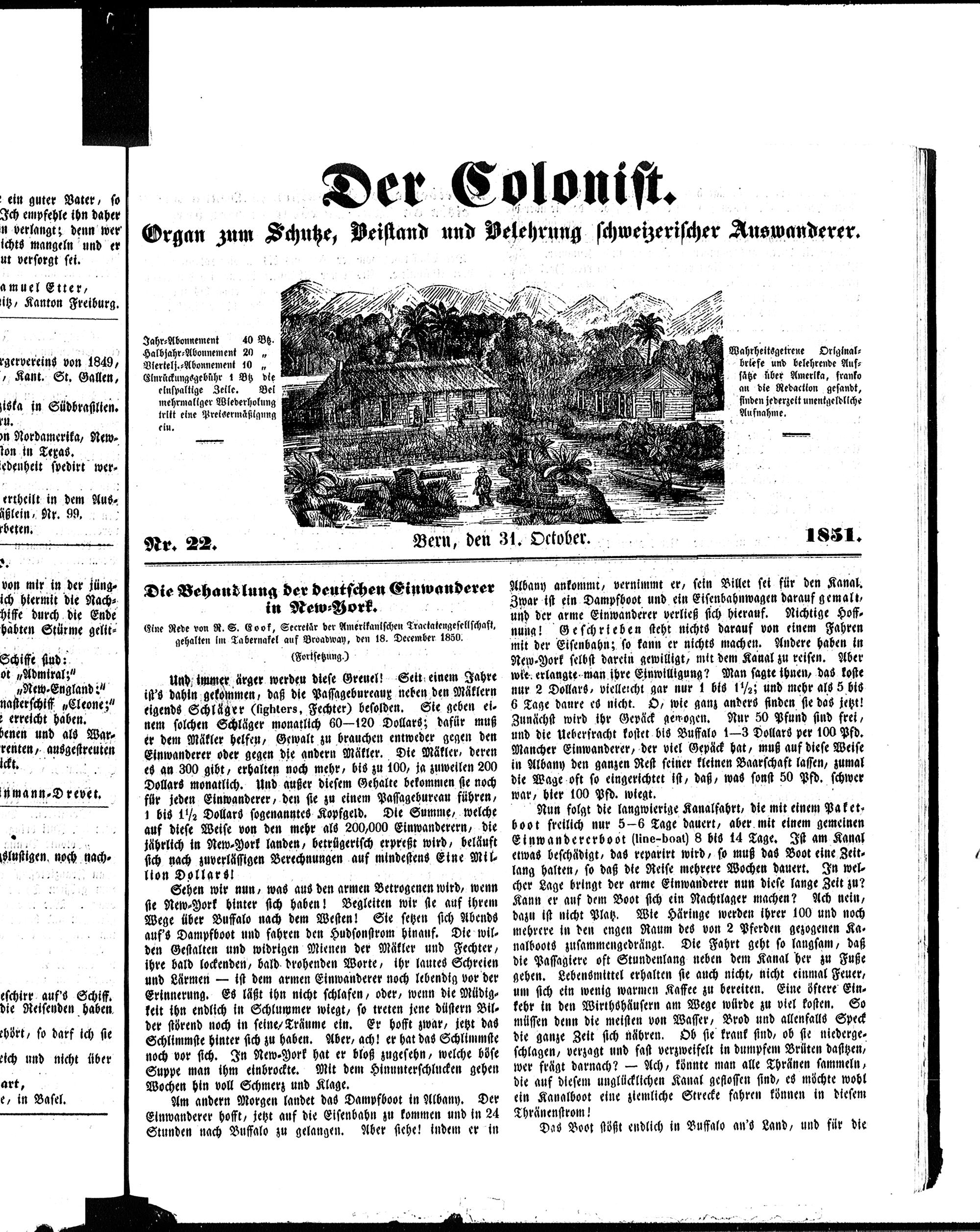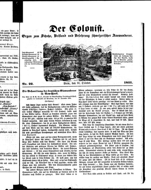Der Kolonist. 1851-1857