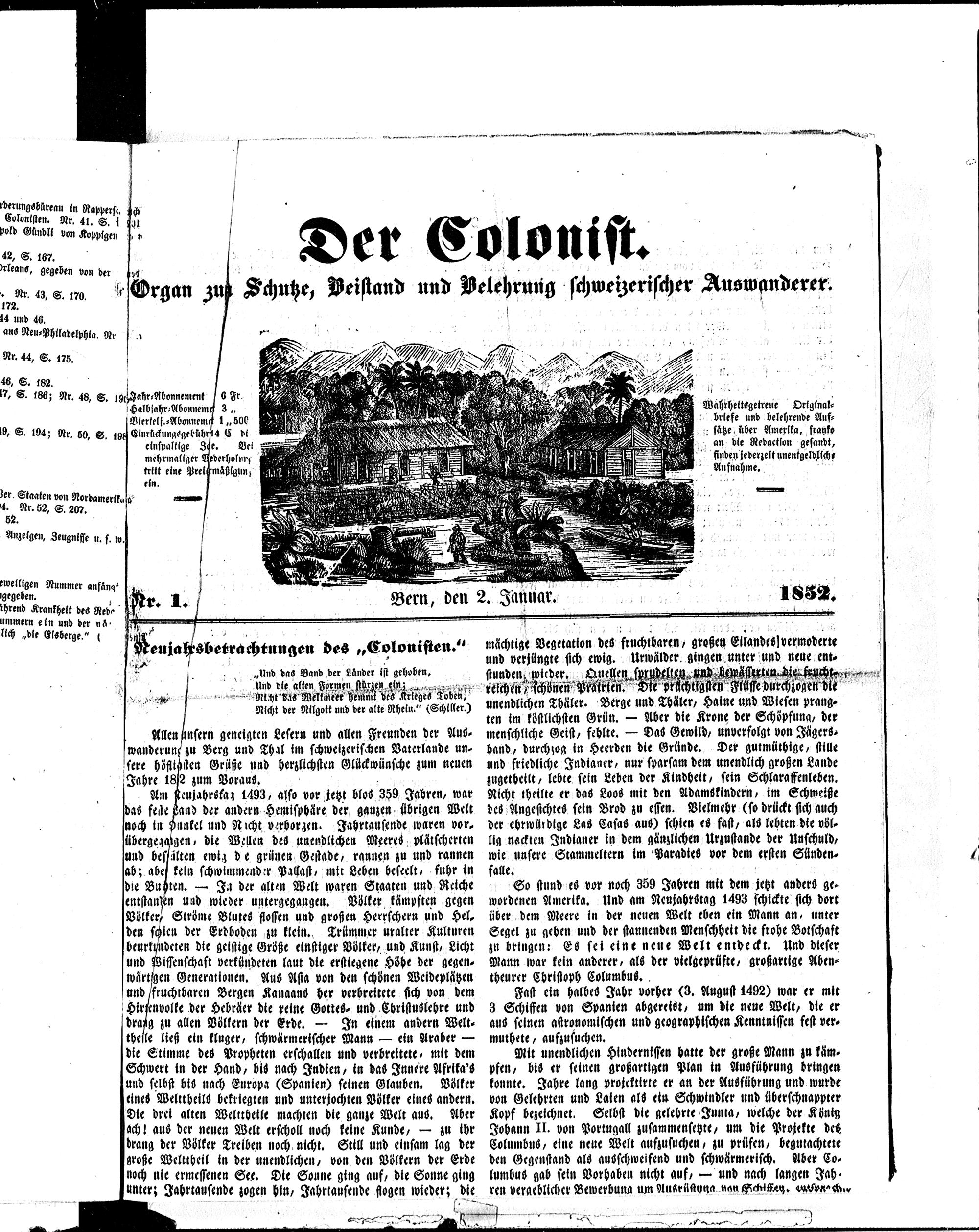 Der Kolonist. 1851-1857