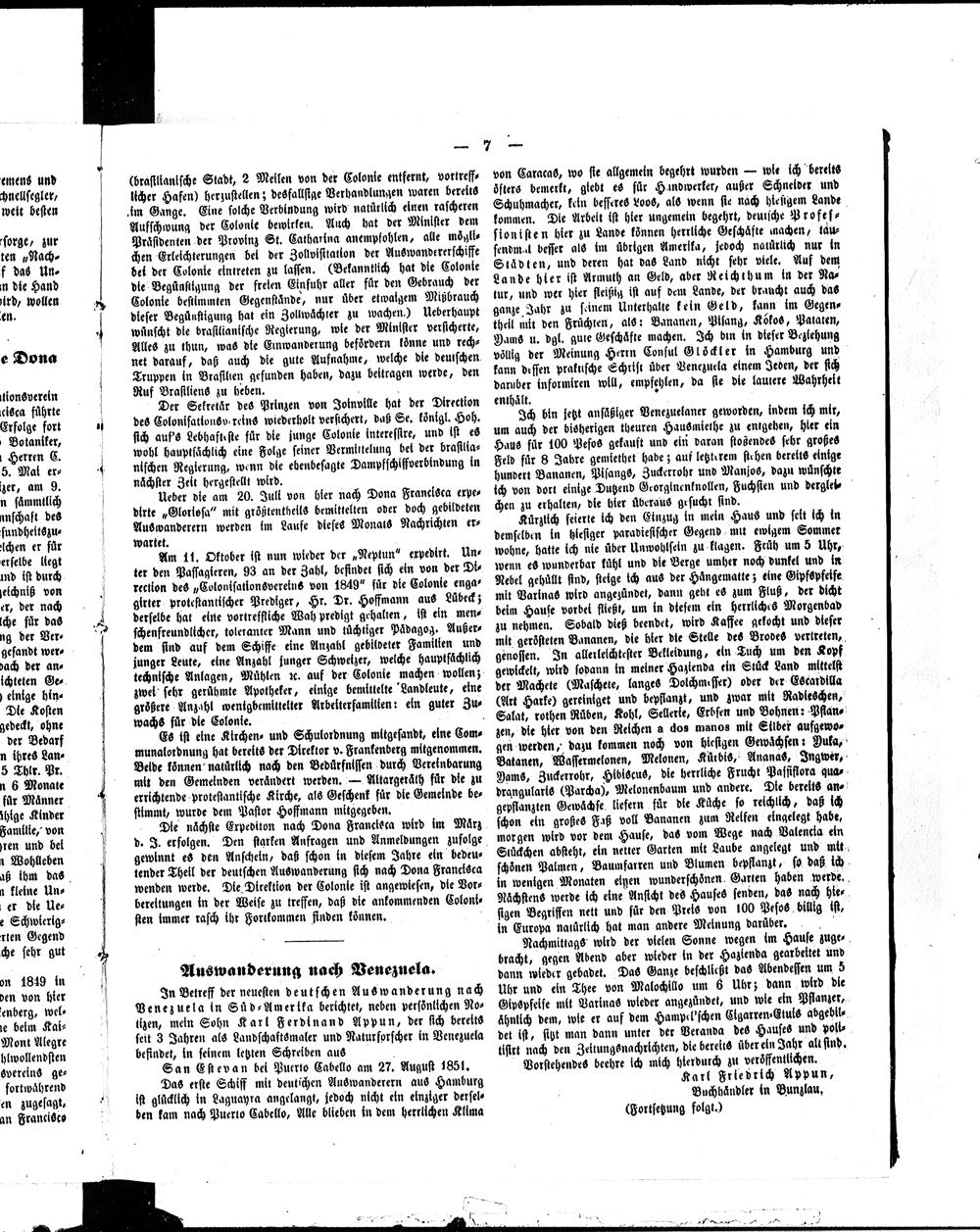 Der Kolonist. 1851-1857