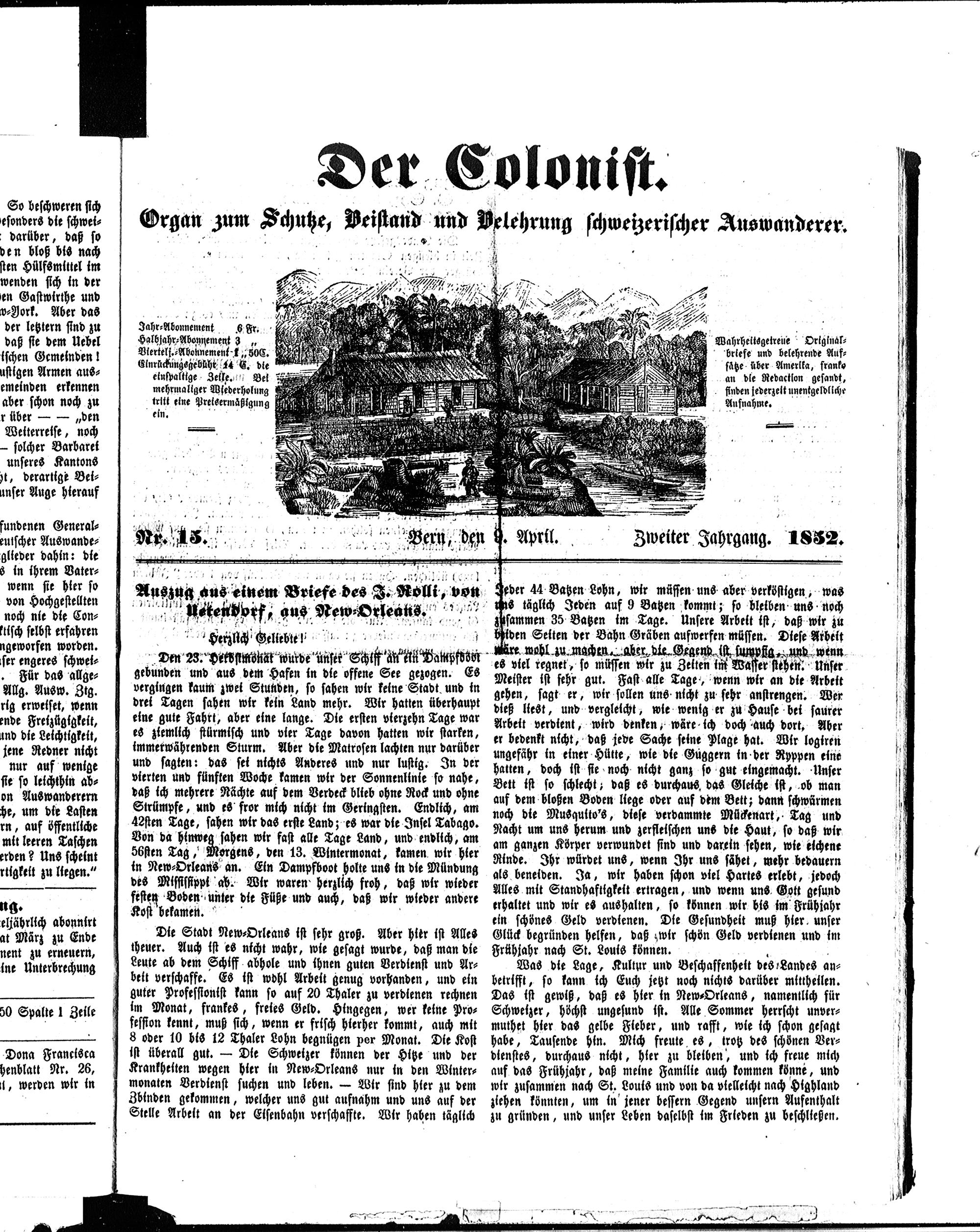 Der Kolonist : Organ zum Schutze, Beistand und Belehrung schweizerischer Auswanderer