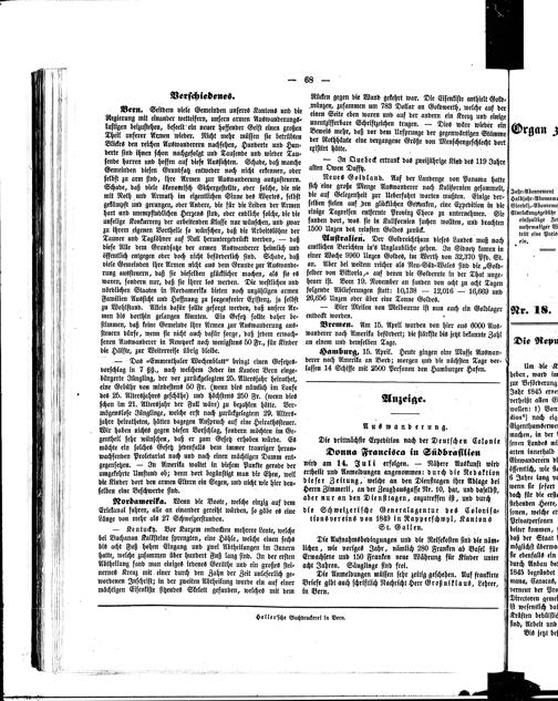 Der Kolonist : Organ zum Schutze, Beistand und Belehrung schweizerischer Auswanderer