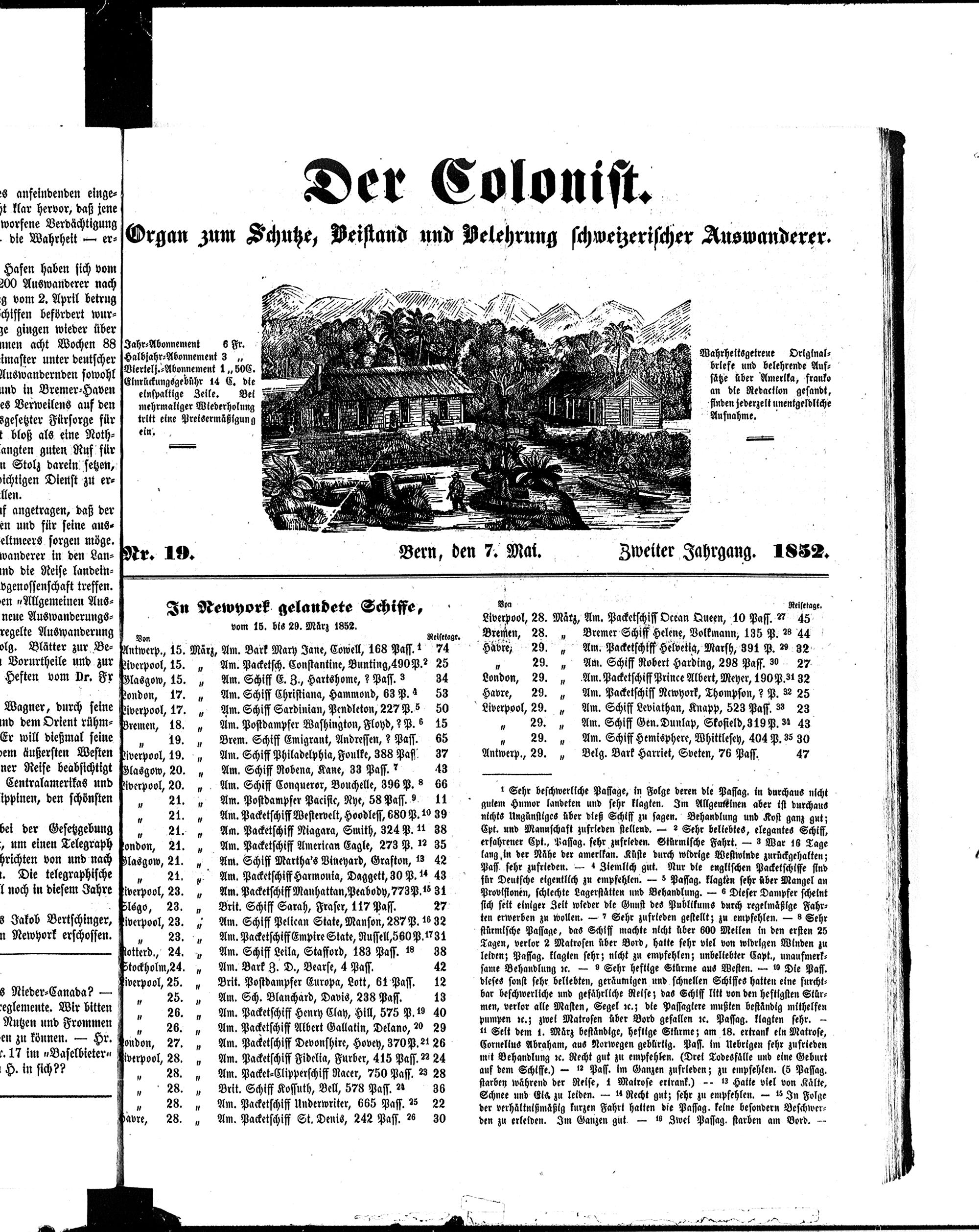 Der Kolonist : Organ zum Schutze, Beistand und Belehrung schweizerischer Auswanderer