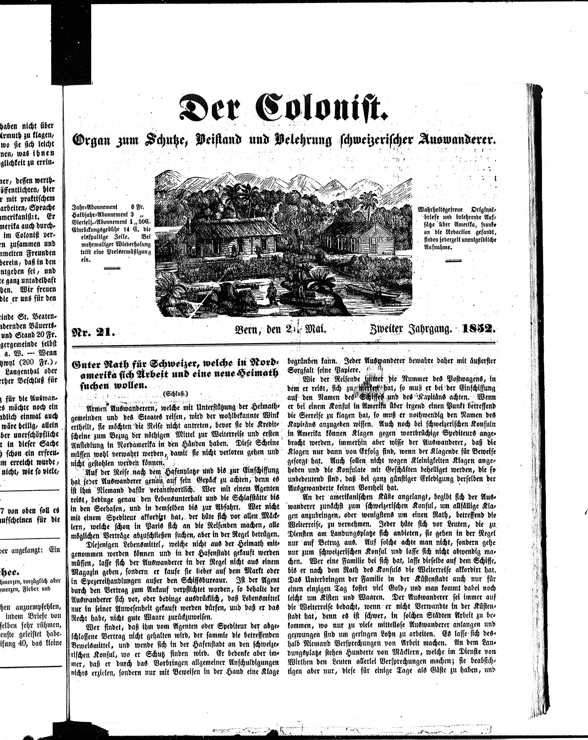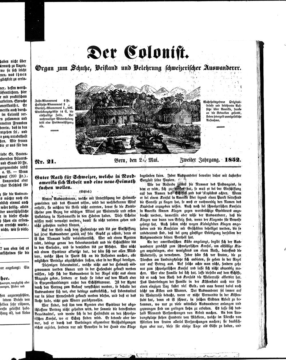 Der Kolonist : Organ zum Schutze, Beistand und Belehrung schweizerischer Auswanderer