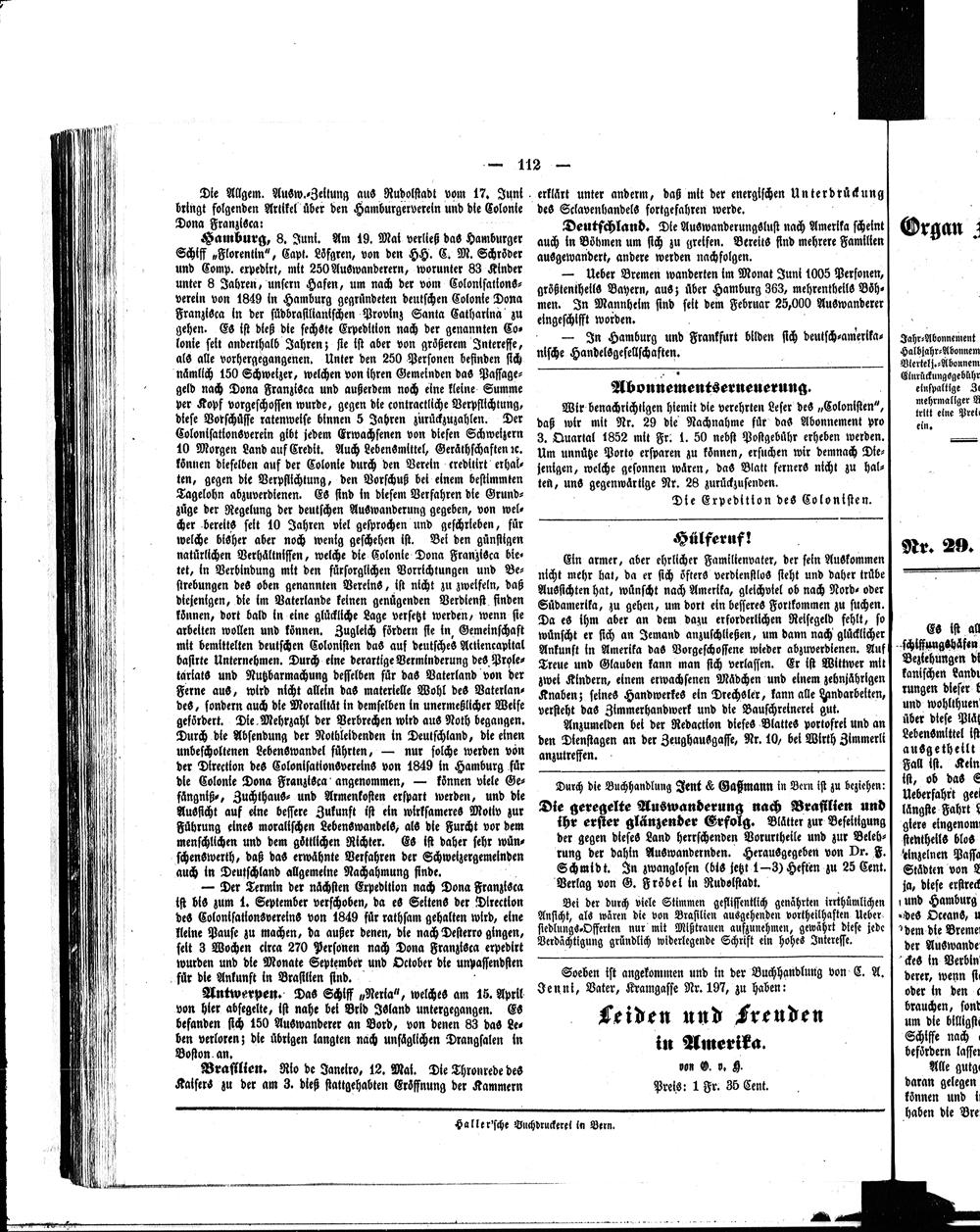 Der Kolonist : Organ zum Schutze, Beistand und Belehrung schweizerischer Auswanderer
