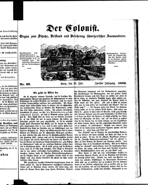 Der Kolonist : Organ zum Schutze, Beistand und Belehrung schweizerischer Auswanderer