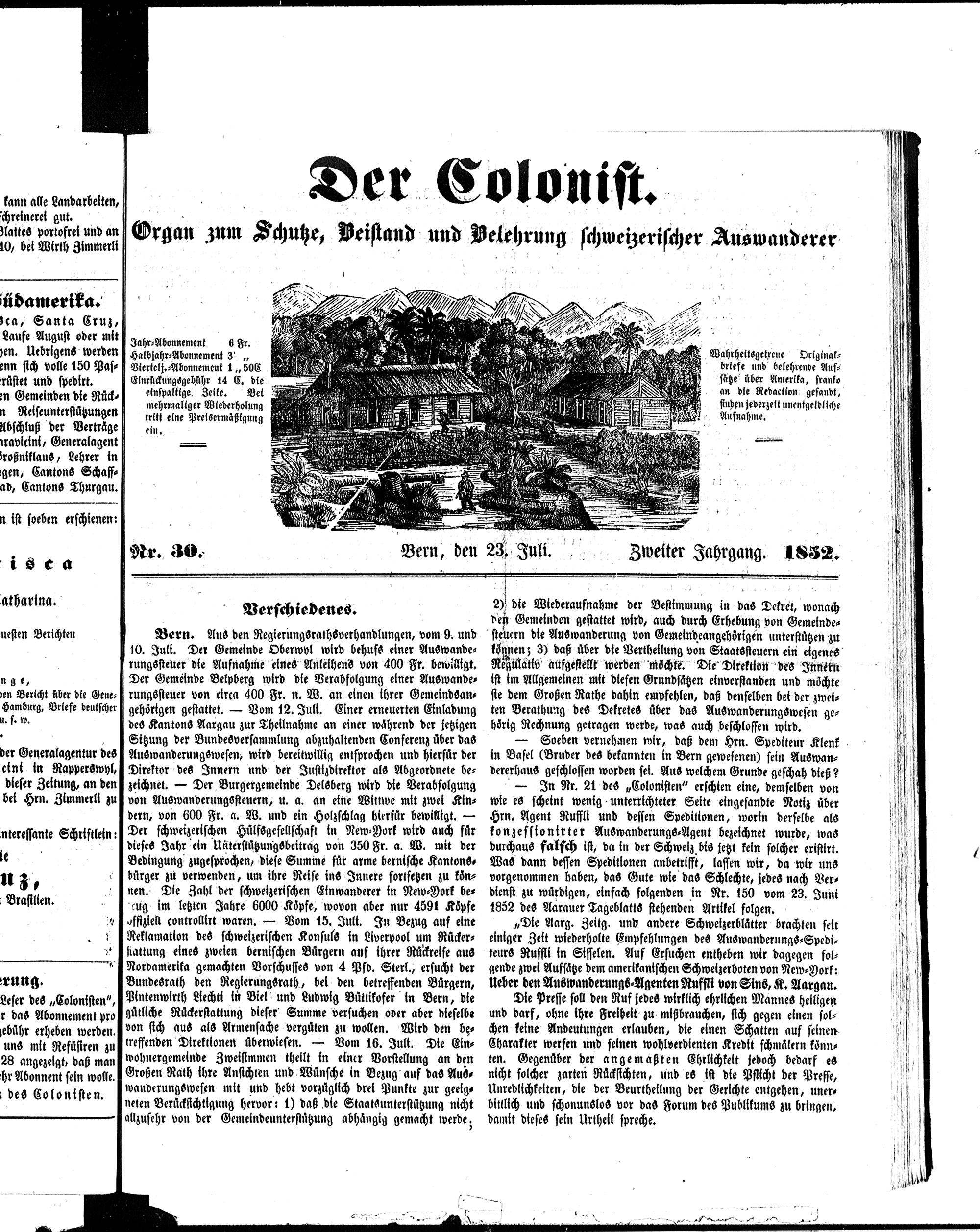 Der Kolonist : Organ zum Schutze, Beistand und Belehrung schweizerischer Auswanderer
