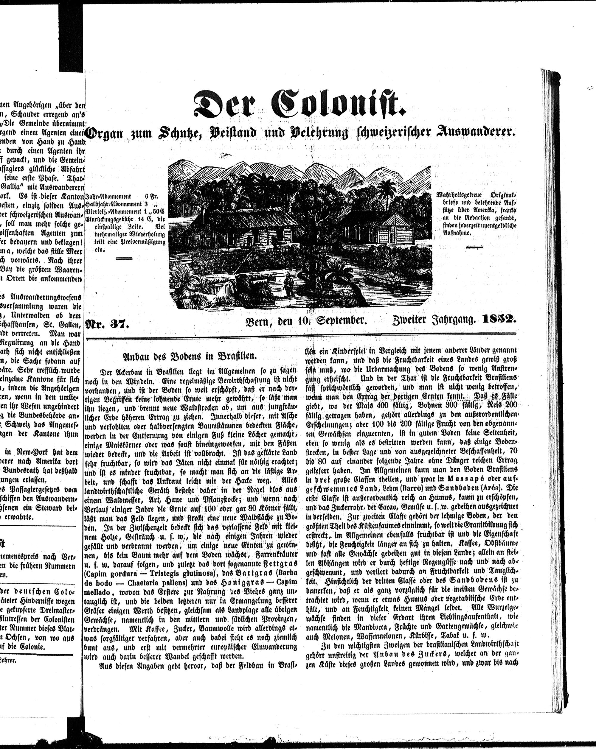 Der Kolonist : Organ zum Schutze, Beistand und Belehrung schweizerischer Auswanderer