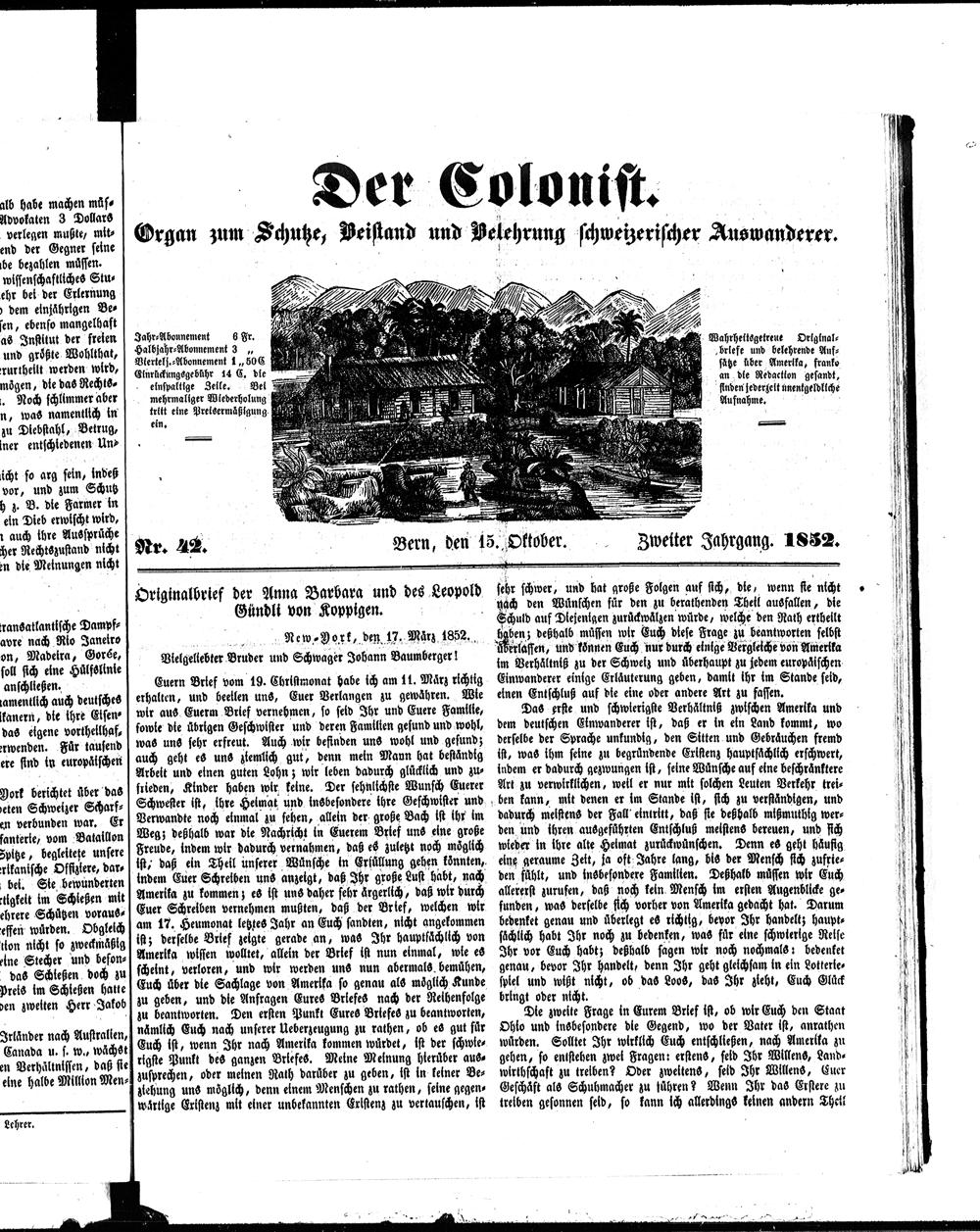 Der Kolonist : Organ zum Schutze, Beistand und Belehrung schweizerischer Auswanderer