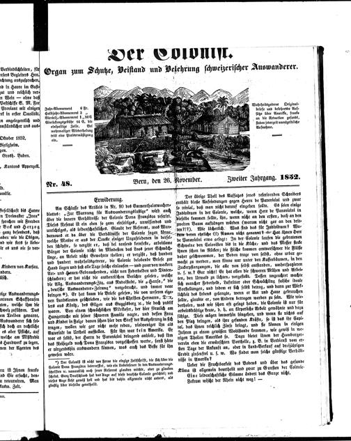 Der Kolonist : Organ zum Schutze, Beistand und Belehrung schweizerischer Auswanderer