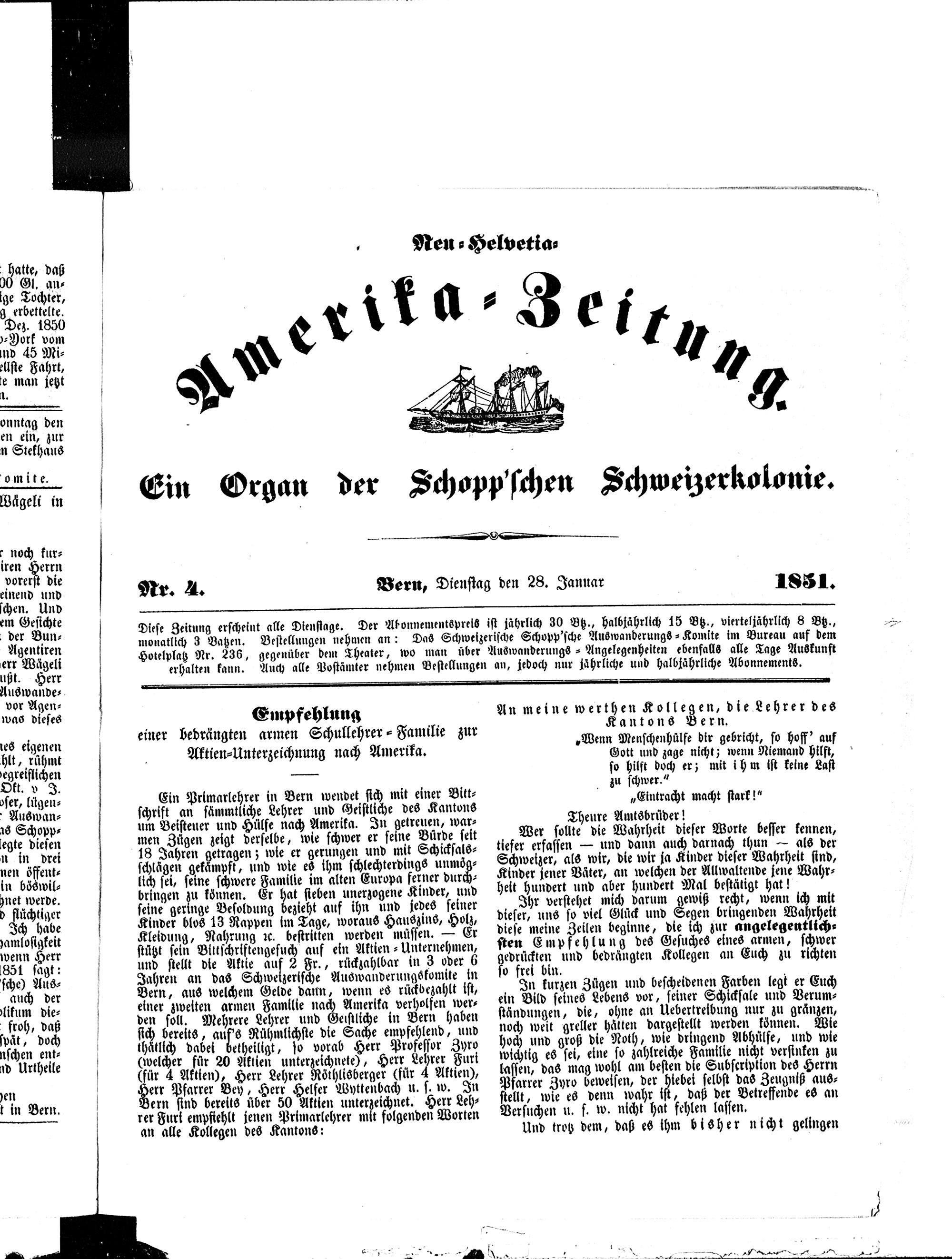Neu-Helvetia-Amerika-Zeitung : ein Organ der Schopp'schen Schweizerkolonie