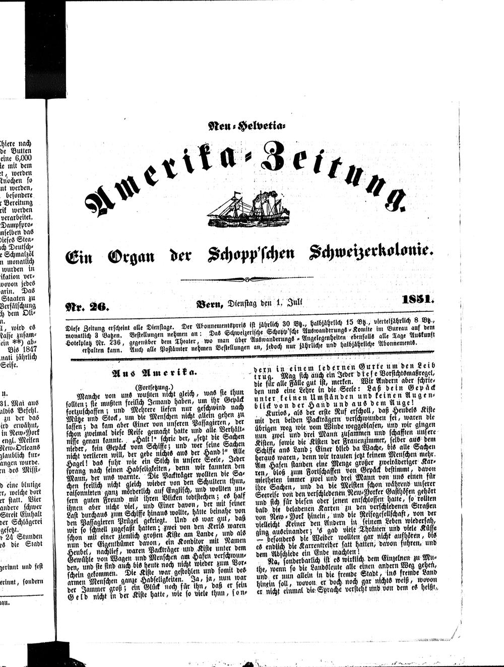 Neu-Helvetia-Amerika-Zeitung : ein Organ der Schopp'schen Schweizerkolonie