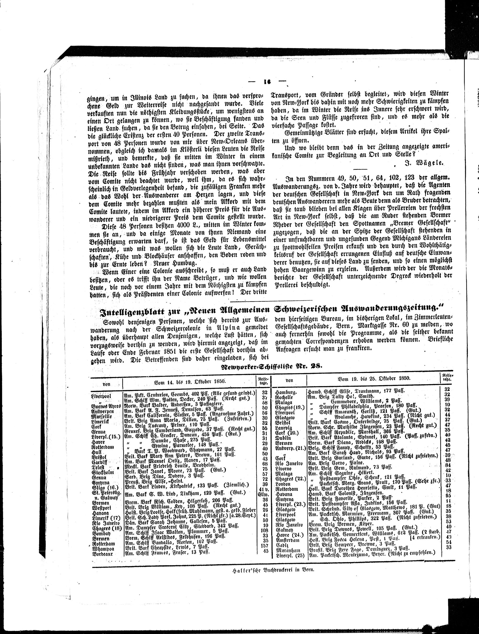 Neue Allgemeine Schweizerische Auswanderungszeitung. 1850-1851