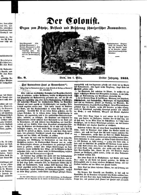 Der Kolonist : Organ zum Schutze, Beistand und Belehrung schweizerischer Auswanderer