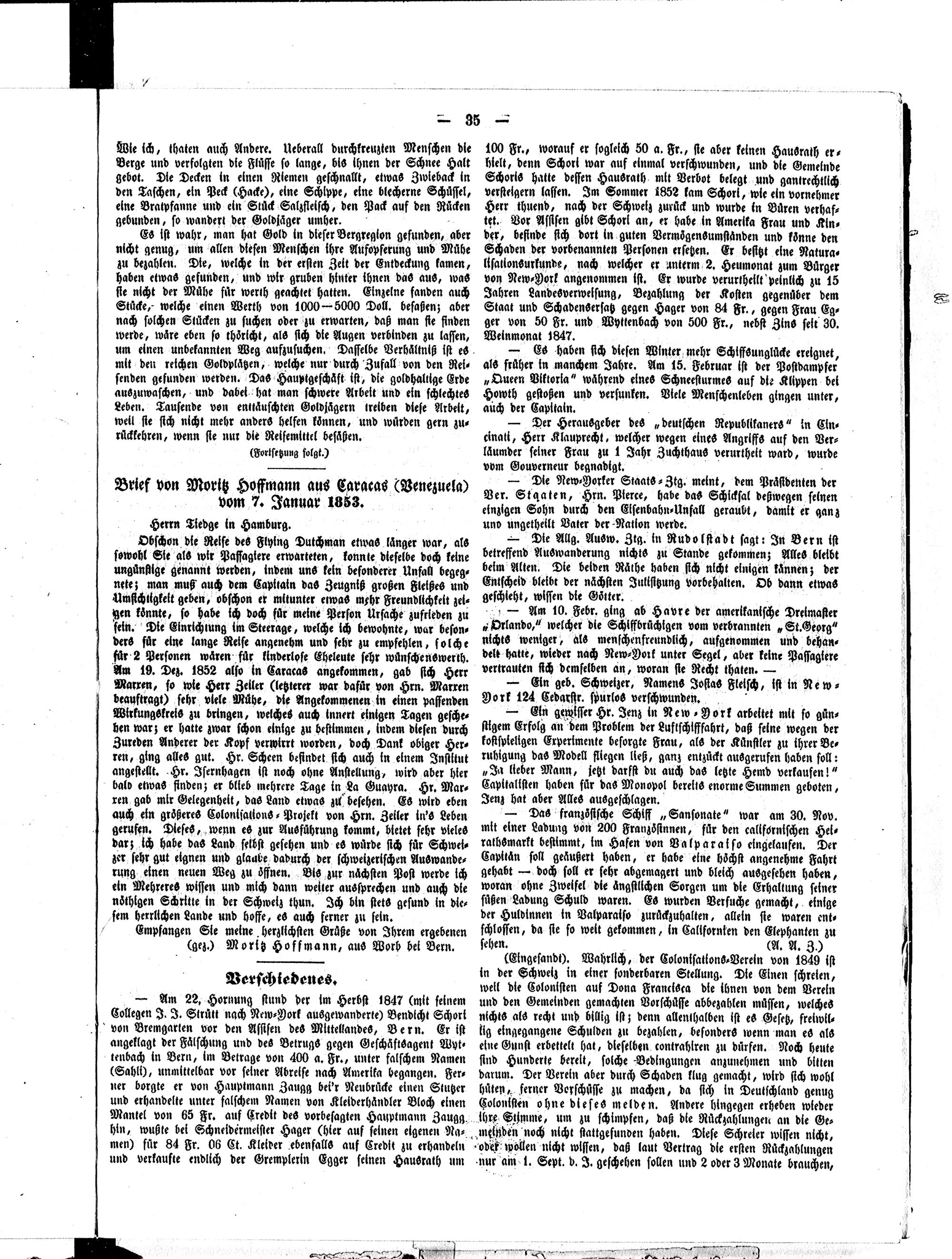 Der Kolonist. 1851-1857