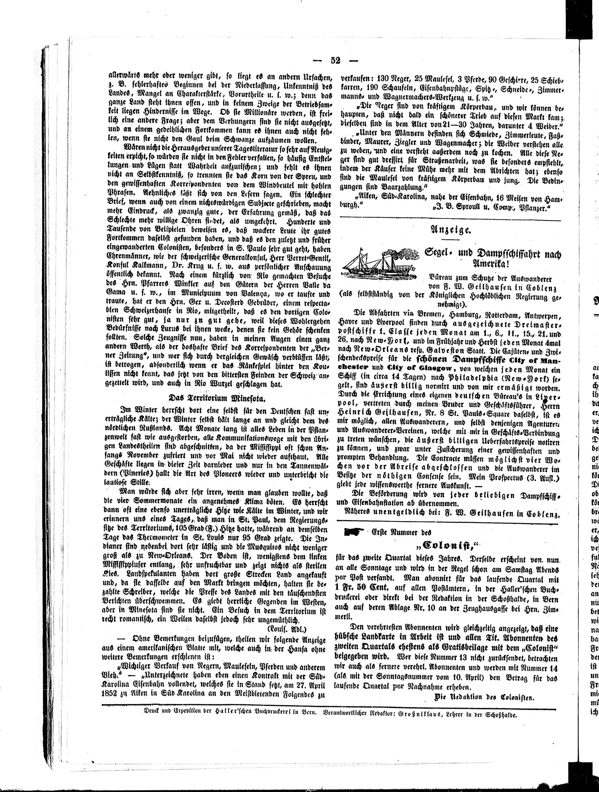 Der Kolonist. 1851-1857