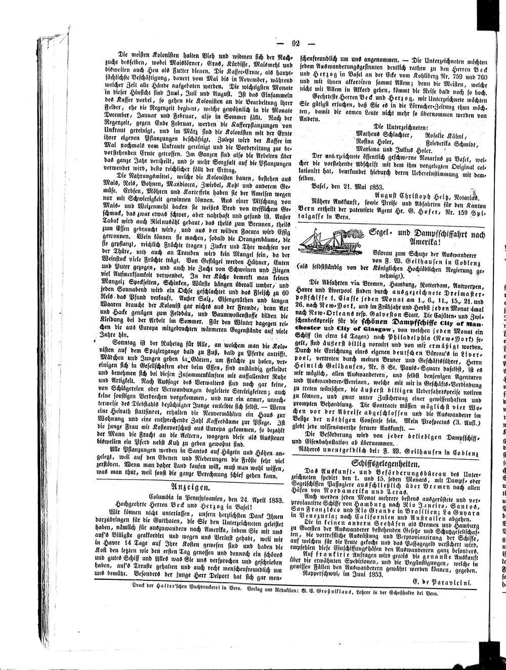 Der Kolonist : Organ zum Schutze, Beistand und Belehrung schweizerischer Auswanderer