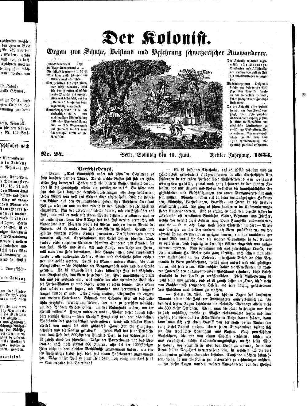 Der Kolonist : Organ zum Schutze, Beistand und Belehrung schweizerischer Auswanderer